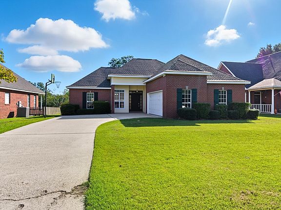 Charming single-story brick home with 3 bedrooms, 2 bathrooms, a dedicated home office, and a 2-car garage with direct water access. Featuring a split floor plan and soaring ceilings, this home offers an open and inviting layout. The private primary suite includes a spacious bath with dual vanities, soaking tub, and separate shower. Located in a gated subdivision with playgrounds and underground utilities, this property blends comfort, convenience, and lifestyle.