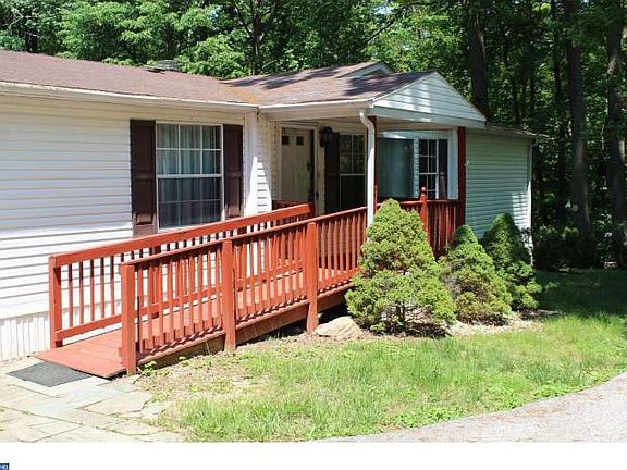 What a great value for the money, with annual taxes of only $2,876 per year. This over-sized, 60' x 27' double-wide mobile home on its own 1.2 acre tree-lined lot sits back off the road, offering privacy and extra driveway parking that is ideal for many large vehicles and a bonus storage shed with a new roof. This wonderful, great buy, 3 bedroom, 2 bath home has cathedral ceilings and very large rooms. Peacefully unwind at the end of the day on the roofed, custom rear deck. The Living Room features a gas stone fireplace, built-in wooden bookcases, cathedral ceilings, and ceiling fan. The eat-in kitchen with vaulted ceiling features a window with the view of the back yard and a new floor and comes equipped with a dishwasher and included refrigerator. The Master Bedroom suite boasts a walk-in closet, while the vaulted, sky-lit Master Bath features two separate sinks with vanities, garden tub and separate shower stall. Rounding out the Main floor living area are two additional bedrooms, a hall bathroom, and the laundry with included washer and dryer. This unique, affordable home offers so much and will not disappoint. Plan your showing today!