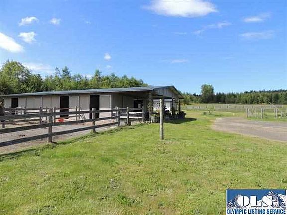 The ultimate horse property with fencing and cross fencing, partly to fence the animals away from a seasonal stream. The 1728 sq ft barn has plumbing, a bath and semi living space, a shower for the horses, stalls, the most incredible horse barn I have ever seen...the round pen has been converted to gardens, but could easily be converted back, the home is a triple wide, and faces south for nice sunny exposure and a bit of a mountain view.