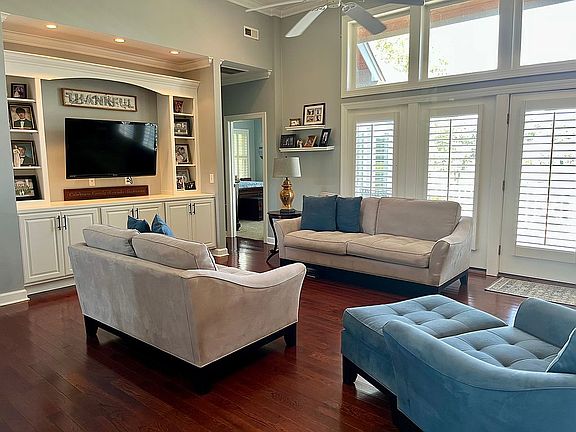 Live on the lake! Gorgeous lake views from the master bedroom, living room and dining room plus the screen porch. This home is filled with windows featuring beautiful custom plantation shutters, has a spacious open floor plan with rich hardwood floors. Gourmet kitchen is perfect for entertaining with marble countertops and beautiful kitchen cabinets. With high ceilings, see-through gas fireplace and custom built in entertainment center, the living room is a great place to relax. The large breakfast/dinning nook overlooks the screen porch and lake. The spacious master suite has a large walk-in closet and luxury bath. The FROG has its own full bath with the potential to use as a 4th bedroom, office or entertainment area. There is also a formal dinning room. This brick home is low maintenance giving you more time to enjoy the wonderful amenities that include a magnificent clubhouse featuring the Lakeview and River room dining options, two award-winning golf courses, pool, tennis & fitness, indoor pickleball court, playground and boat launch on the river.