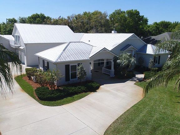 Custom built home only steps from the Indian River! 2nd floor guest suite w/private balcony, Master bedroom with large sitting area/office space w/double sided fireplace. Dble custom walk-in closets. Master bath w/dble granite vanities, tub & walk-in glass block shower + private water closet. Open floor plan w/chef's kitchen, gorgeous granite & SS appliances opens to the impressive screened in lanai w/summer kitchen, heated salt water spa & pool. Enough garage space to fit 4-6 cars PLUS a full-size RV(240 hook-up) and/or boat with 20 ft. ceilings! Fully powered under air with all the toys fit for a car collector. 40 Year metal roof 2012. A/C Lg 2016, Sm 2017. Septic pumped 2017. Between the concrete block construction, storm shutters & generator, this home is like a Cat 5 storm shelter!