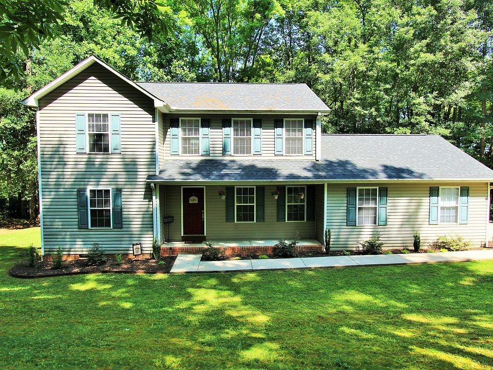 Welcome Home to this beautifully landscaped retreat!! Located in a private cul-de-sac with a deck overlooking 3.15 acres and a serene creek flowing across the back of the property. Walk in off the rocking chair front porch to a foyer with formal dinning on one side and the office/kid's room to the left, complete with pocket doors. This open floor plan includes hardwood floors, marble window seals, a stacked stone fireplace, quartz counter tops, large under mount sink, and gas range. Master features a trey ceiling, dlb. vanities, and walk in closet. Large laundry room and 2 more bedrooms upstairs complete this home. Come see why 185 Commodore Drive should be your next home.