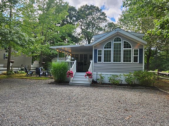 Rare opportunity to own this beautiful 2-bedroom 2015 Kropf park model home on desirable dead-end street at Sun Retreats Peters Pond in Sandwich, MA! Double lot with views of the pond on the most sought-after street in the park! This gated seasonal resort community on Cape Cod is open April through October & offers two beaches, heated swimming pool w/ slide, laundry rooms, sports field, basketball court, 2 dog parks, boating, general store, weekly activities & entertainment for all ages, on-site restaurant & bar with live music, boating, arcade, playground, jumping pad, and so much more! This unit will come turn key with all furniture, decor, dishes, pots and pans, storage shed with everything you need for maintenance, kayaks, 6-person golf cart, etc.! Inside features beautifully decorated rooms, loft, a 3-season room with pullout couch & eating area. Comfortably sleeps 8. Newly added mini-spljt heating/ cooling system & new carpets. Outdoor firepit & backyard lounge area. Won't last!