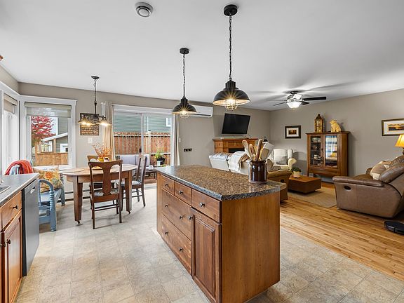Open-concept family areaGorgeous kitchenAmple cabinetryLarge islandUpdated appliancesDining spacePropane fireplace