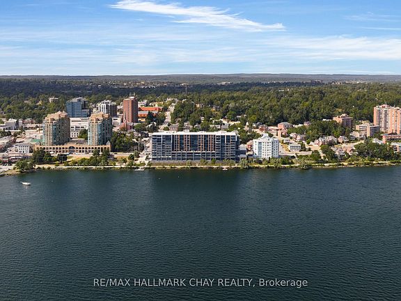 WELCOME to the nordic-inspired Lakhouse - Barrie's premiere waterfront condo community! This Aqua 2 model - one bedroom + den + 1 bath - 741 sq.ft. - is a bright waterview unit with tasteful neutral decor throughout and modern finishes. Lumon system balcony extends your living space outdoors - simply close the glass panels on cooler days, and open them when there is a warm breeze from the lake! Stunning views of Lake Simcoe's Kempenfelt Bay to the South and East. Includes many upgrades, 4 x s/s appliances, ensuite laundry, secured inground parking, exclusive locker. Amazing building amenities are second to none - concierge, party room with caterer's kitchen, meeting room, pet wash station, oversized whirlpool spa, sauna, fitness room, canoe/kayak/bike storage, two outdoor rooftop balconies! Steps to Barrie's vibrant downtown - shopping, services, fine & casual dining, entertainment, recreation. Easy access to key commuter routes, public transit, GO Train / Bus service. Steps to waterfront of Kempenfelt Bay - boardwalk, beaches, marina, Simcoe County trail system. Short drive to golf, skiing, hiking, biking and more - throughout Simcoe County! Appliances included as shown. Parking included (1). Tenant pays hydro. Available for occupancy on December 1st.