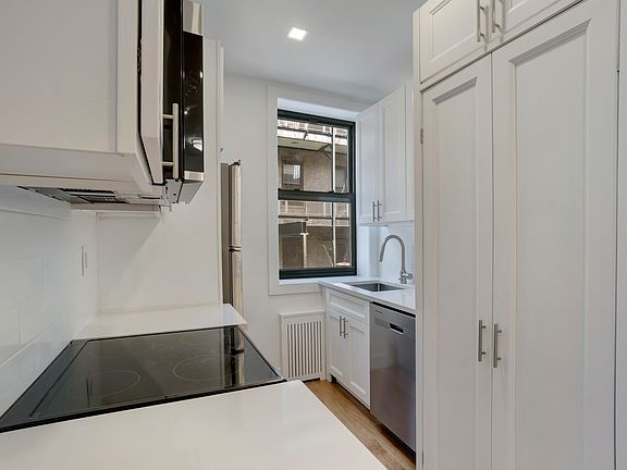 EAST VILLAGE GEM MASSIVE, EXQUISITE UNIT - ELEVATOR BUILDING IMMACULATE, MODERN LUX. RENO. Standing tall and proud on bustling East 3rd Street is this triple mint, bespoke, truly unparalleled modern luxury apartment in the epicenter of the East Village. Live in unmatched comfort, space and style in this rarely available home that will transform your way of city living. With multiple high-floor exposures throughout, the beautifully appointed, sunlit and large bedroom (easily accommodating of a King bed) comes loaded with built-in closets & storage, hand-carved modern moldings and recessed LED lighting. The exquisitely renovated modern kitchen is completed with full premier stainless steel appliances, sexy tiled backsplash, high-gloss white lacquer cabinetry, designer-white countertop, brushed nickel hardware finishing and custom mounted LED fixtures. A high-capacity washer/dryer is also conveniently located directly in-unit. The full bathroom is handsomely finished with imported floor-to-ceiling marble tiles, custom glass shower doors with brushed nickel track and motif, LED lighting and London grey self-closing vanity with recessed glass medicine cabinet. A separate, center-set formal living room completes this special home. Be it hosting a group of lucky guests or a quiet, relaxing day / night in, this is truly a special place to be. Gorgeously polished hardwood flooring, hand-carved molding treatments and recessed LED lighting adorn the unit throughout. Don't miss out. *SAME DAY APPROVAL and $0 SECURITY DEPOSIT VIA RHINO (subject to qualification). 185 East 3rd Street is the East Village's premier rental destination. Charming, well maintained elevator building sandwiched in between Bowery, LES, Alphabet City and mere steps from Tompkins Square Park. Revel in the very best restaurants, cafes, nightlife, parks and hospitality venues that the East Village can offer. *Same-day application approval is contingent on submission of a complete application package and is subject to final credit / reference screening. Guarantors are welcomed and accepted. Access to main subway lines (F, J, M, Z, L, 6). Upfront fees to be paid: Application fee: $20 per applicant First month's rent: 1 month's rent Security deposit: equivalent to 1 month's rent Painting / reconditioning fee: $200 Recurring fees: $6 monthly technology fee