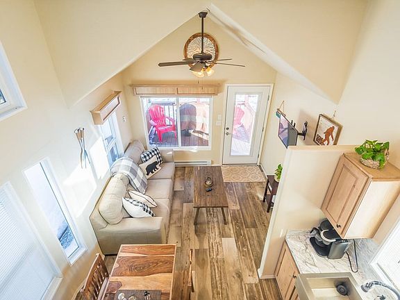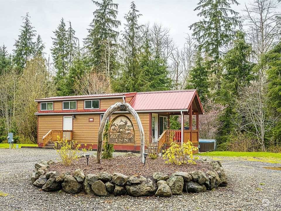 Investment home/part time residence/downsize. The home features a modern design and spacious layout. The tall ceilings and open floor plan allow the space to be maximized. The house can comfortably sleep five people. There are three beds: one double bed, two twin beds in the loft, and a couch in the living room. A newer hot tub, and the sounds of Elk Creek; a year round salmon stream. Spacious yard, plenty of room to build a secondary home or shop.
