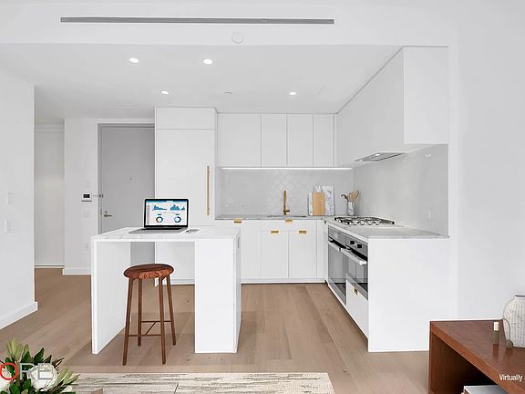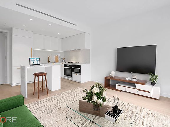 Additional apartment features include an in-unit washer and dryer, high-efficiency central VRF heating and cooling, garbage disposal, and pre-wiring for smart home features.
