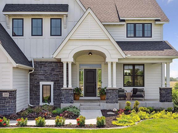 Stunning two-story home on 8.68 acres in the Hamilton Century Farm neighborhood. Loaded with amenities, this open concept plan offers a spacious kitchen with quartz countertops, great room with a fireplace, built-in cabinetry and floor-to-ceiling windows that flood the space with natural light and showcase long southwesterly country, pond and sunset views. Additional features on the main level include a heated 3-season porch with a fireplace, formal and informal dining areas, den/flex room and a walk-in pantry. The upper level provides four bedrooms including the luxurious owner’s suite with a beautiful bathroom and custom walk-in closet, as well as the laundry room. The walkout lower level is excellent for entertaining with a large family room, game room, wet bar, exercise room and a sport court. The property also includes a 4-car heated garage and extensive custom landscaping with patios, firepit and a front porch. Located at the end of a quiet cul-de-sac. High demand Orono schools.