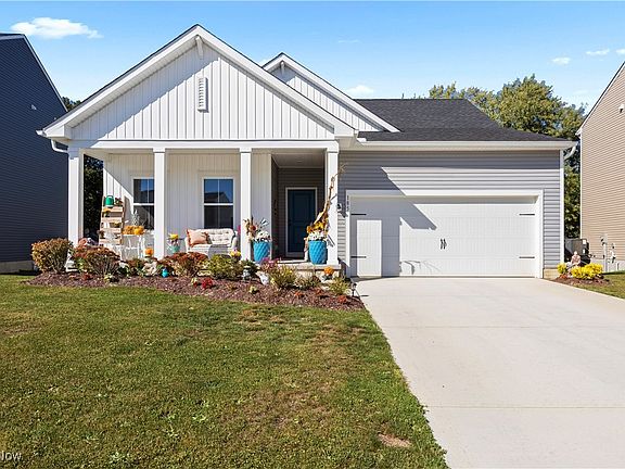 Welcome home to this NEWLY BUILT RANCH style home that blends comfort, style, and functionality for easy modern living. This home was completed in 6/2024 and this popular model can not be newly constructed for this price. No need to wait for construction and it's hassles. Plus, there is a TRANSFERRABLE Warranty included for that extra comforting peace of mind. The home has a wonderful welcoming front porch area. Step inside and experience the expansive great room filled with natural light featuring cathedral ceilings for an airy feel. The cozy fireplace creates a welcoming gathering spot for entertaining and relaxing. The open floor plan seamlessly connects the living, dining, and kitchen areas making it ideal for both daily living and hosting guests. Gourmet kitchen is beautifully equipped for every chef and includes a spacious center island for casual meals or conversation. Sleek recessed lighting and an oversized pantry make storage and organization effortless, all while adding a touch of sophistication to your home's heart. The flexible 4-bedroom layout easily accommodates families, guests, or a home office. Both full bathrooms are designed for comfort and practicality, featuring quality finishes and generous storage. Additional oversized closets throughout the home provide convenient organization and keep every space neat. Step outside to enjoy a charming front porch, perfect for morning coffee, and a back deck ideal for summer cookouts or relaxing at the end of the day. The spacious 2 car attached garage adds convenience and offers plenty of room for vehicles and storage. The full basement is ready for your finishing touches. This wonderful location further complements the home. Situated in a friendly neighborhood, close to parks, schools, dining, shopping provides the perfect balance of quiet living and community connection. Schedule your private tour today!