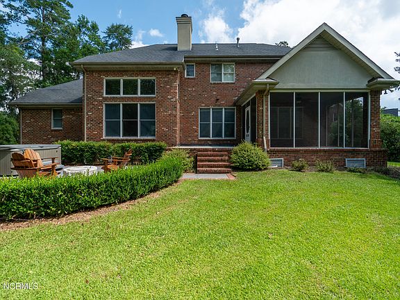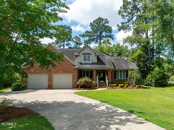 This stunning brick home is situated at the end of a quiet cul-de-sac in the desirable Olde Town subdivision and offers wonderful curb-appeal with a breathtaking interior! An attached two car garage and rocking chair front porch welcome you home. Enter inside to amazing natural light that engulfs the living room and its tall ceilings. A cozy dual sided fireplace leads you into the kitchen where a chef's dreams come true with granite countertops, a large island with prep sink, stainless steel appliances, white cabinetry and access to the spacious screened-in porch. Have a formal dining room to host guests for dinner parties. All three bedrooms have attached full baths and walk-in closets. The master suite features an office space, dressing room, 2 huge walk-in closets and an amazing bathroom with a dual sink vanity, walk-in shower and a garden tub. Extra notable features of this home include its hobby room, great laundry room and a hot tub on the back patio. Perfectly located just minutes from Historic Downtown and the heart of New Bern. Only a short commute to MCAS Cherry Point or North Carolina's Crystal Coast. Contact us today for your private tour!