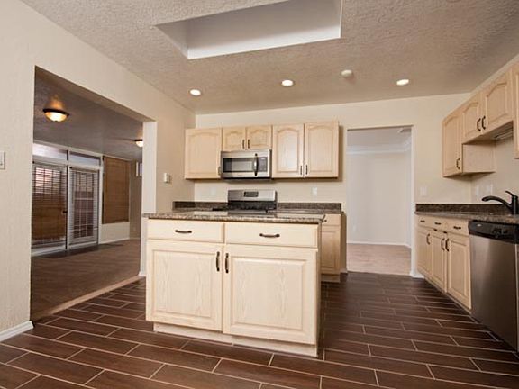 Open floor plan with a beautiful fireplace in living room. Completely updated and remodeled! Large kitchen with granite counter tops. Quite corner lot. Gorgeous new tile floors and carpet throughout. Tile in all wet areas. Large back yard with a pool and Hot tub. Like a new home! House includes ALL stainless steel appliances. Washer and Dryer Included! All bathrooms completely redone with granite, lighting, fixtures, etc. Large storage shed. Backyard access! Pool needs some work and seller is willing to fix or fill in pool to make patio with acceptable offer.
