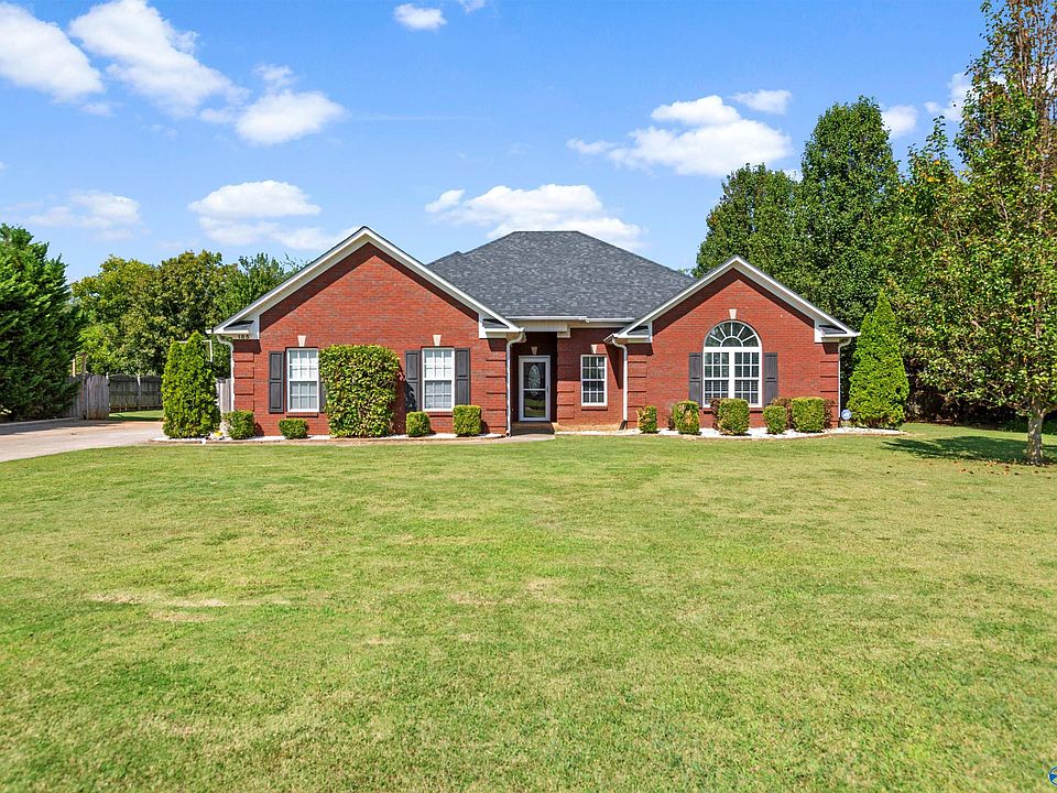 VA ASSUMABLE- 2.625% interest rate! Welcome to 185 Hunters Cove! Convenience meets country living in this adorable brick home! One level living allows for easy maintenance. The home features 4 bedrooms to include the spacious primary suite with trey ceiling, two walk in closets, and attached master bath with separate tub and shower! The kitchen features plenty of cabinets, pantry space, and an island. The living room is cozy with a fireplace, wood floors, and plenty of room to entertain! The covered patio offers plenty of options for outdoor living along with the HUGE backyard with a tree-lined fence! Lots of opportunities for the backyard of your dreams! Do not miss this incredible home!