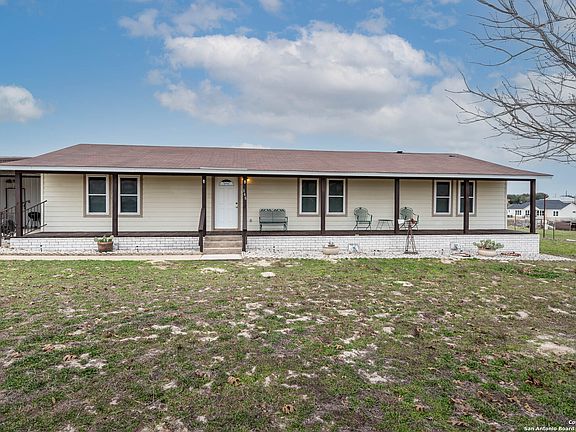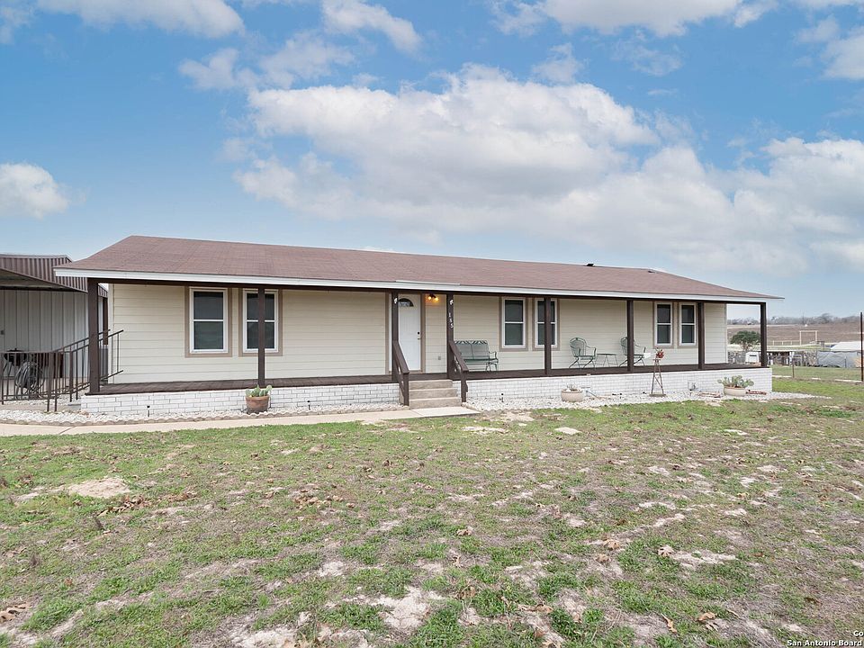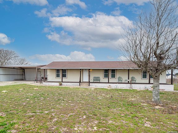 Impeccably maintained 3bd/2ba single family home on 2.5 acres in La Vernia ISD. This home has been lovingly cared for by one owner. Spacious kitchen with lots of cabinets and counter space. Laundry room with sink and door to the back patio. Light and bright master bedroom with nice walk-in closet and en-suite bathroom. Large secondary bedrooms. Welcoming front porch that spans the front of the home and a HUGE covered patio in the backyard. Fully fenced 2.5 acres with gated entrance. Plenty of parking under the oversized carport with attached workshop. Really nice garden shed to store all of your tools and lawn equipment. No HOA...bring the horses or chickens and get ready to take in the amazing sunsets from your new back porch. Call today for more info!