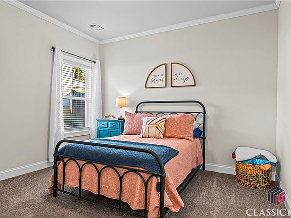 The kitchen is a chef's delight, featuring stunning granite countertops, upgraded cabinets, and a generous pantry. The open-concept living space is perfect for entertaining, complete with a cozy wood-burning fireplace and elegant crown molding.