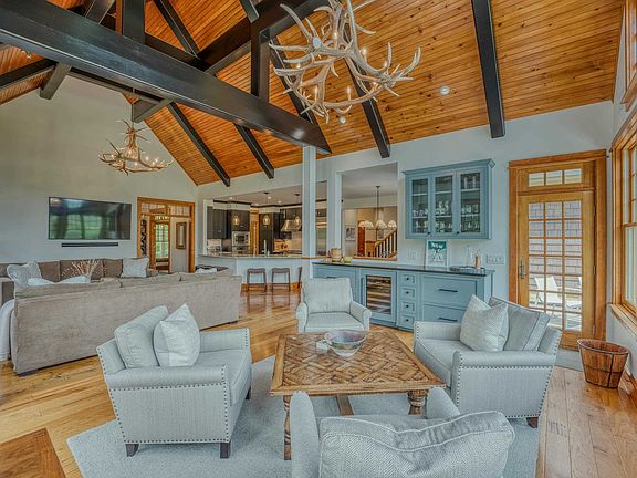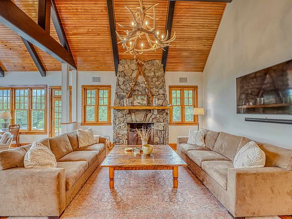5.57 +/- Acres. A Mountain Home with elegant workmanship without compromise. Stunning views of Lafayette Mtn range and Cannon. Finish appointments of stone, wood and Fir beams all integrating home nicely with natural surroundings. A warm feeling; vaulted ceilings, lots of glass letting sunlight flood rooms and focal to view, pond and lovely outdoor patio. 1st floor appointed with primary suite. Imagine waking to magnificent views and atrium doors leading to private patio. Rounding out 1st floor is guest-ensuite, office, LR, Gathering Room, large open kitchen & more. Upstairs, 3 guest en-suites, office nook, nursery or "other." Walk-out lower level has ample room for movie night, ping pong, pool table and exercise. Large private pond has brought years of skating memories for this family or enjoy stocking it and fly fish in your own back yard. Property abuts State of NH with trails just out your door. Close to Franconia Village, quick I-93 access, min. to Cannon Mountain and you'll be living nearly IN Franconia Notch-as close to heaven as one can get! Kids in Ski programs? Not a problem getting to the Mtn. early! The private Profile Club across the street. Bethlehem Country Club for golf, the area will afford you miles of biking, hiking, year-round exploring in your back yard! Highly rated schools, warm community of people and a lifestyle most dream of. Come work, live and play with us! OFFERED FURNISHED (less primary suite and personal items).