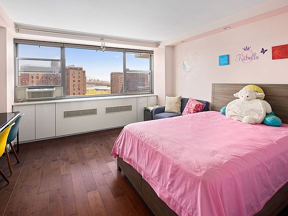 Make this your new home! Thoughtfully renovated with many custom built-ins, this inviting home has a spacious living room and dining foyer, a separate modern kitchen, a generously sized bedroom, an airy bathroom, excellent versatile closets, and a South-facing balcony. Perched on a high floor with window in every room, this 1-bedroom gets excellent cross ventilation and an abundance of natural light. The apartment has approximately 800 sq ft, and features city and skyline views including the East River, the Brooklyn Bridge, Manhattan Bridge, and the Verrazano Bridge. A perfect move-in opportunity not to be missed.