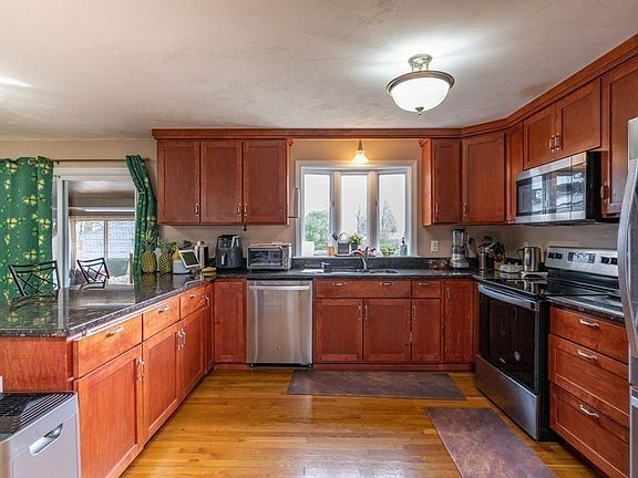 Located in the sought after Kennedy school district, this spacious colonial sits on a private, .75+ acre lot with 4 bedrooms, 2.5 baths, a 1 car garage! 1st floor features beautiful hardwoods throughout, primary bedroom with en suite full bath, dining room, half bath, updated kitchen with maple cabinets, granite countertops, stainless steel appliances; dishwasher (2023), oven and microwave (2020), fridge (2017), and slider leading to large 11x14ft screened 3-season porch. 2nd floor features large living room with cathedral ceilings, functioning wood burning fireplace, walk out composite deck (2020), 3 additional spacious bedrooms (carpet 2018), full bath and dedicated laundry room! Bonus storage space in the attic. Large, private yard with shed. Large unfinished basement, brand new furnace (2023), town water/sewer, 200 amp electric. Close proximity to 495, commuter rail, local shopping centers, restaurants, and more!