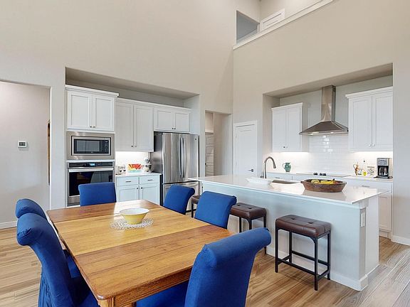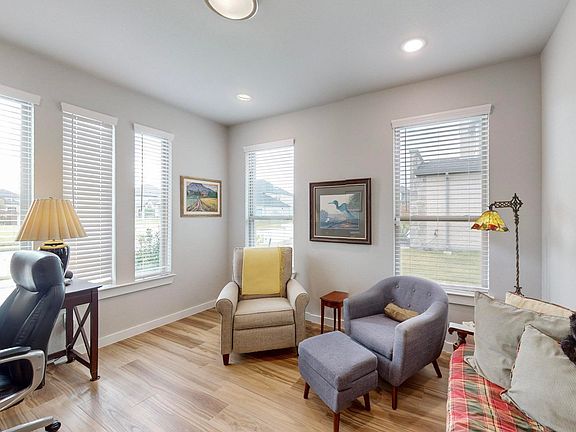 Spacious home, The McCartney, by Trophy awaits your family in sought after Buffalo Ridge that offers room for a large family with a generous master bedroom ensuite, an additional bedroom with private bathroom and a home office, and half bath and a large kitchen, dining & living room complete with electric fireplace, soaring ceilings and beautiful windows, downstairs. Upstairs, you will find a sliding barn door to separate the family room, the media room, and two bedrooms and a full bath, plus set apart upstairs, a guest room ensuite, perfect for company or your growing family. You have a total of 5 bedrooms and 4 full bathrooms, an office and half bath. All this and a three-car garage with special flooring & shelving. A 75 ft lot with a yard that is landscaped & fenced. Home backs up to Green Space. Security system. Quiet neighborhood. Community pool. 3753 SF, 5 beds, 4.5 baths, 3 car garage, provides lots of space to enjoy.