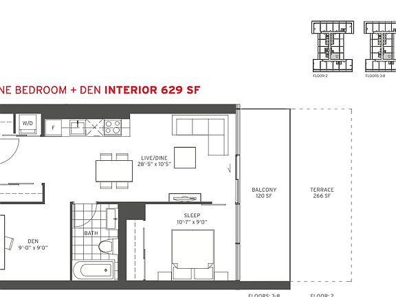 1 Bedroom + Functional Den Perfect for a home office or guest space
