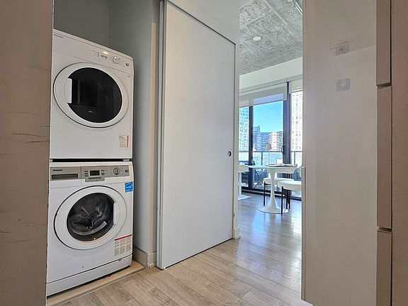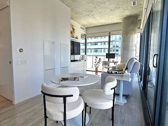 Beautiful west-facing one-bedroom floor plan with floor-to-ceiling windows, filled with natural light. Features a modern Euro-style kitchen with integrated fridge/freezer, dishwasher, stove, and tiled backsplash. Throughout the unit, you'll find sleek engineered hardwood floors. Enjoy a spacious wrap-around balcony, perfect for relaxing or entertaining.The apartment includes custom blinds and a modern thermostat for added comfort. The bedroom boasts large windows, double closets, and hardwood floors. Located within walking distance to the subway, TTC, light rail, and Mt. Pleasant Express Bus to downtown. Also nearby are Loblaws, a movie theatre, top restaurants, and schools.The building offers excellent amenities, including an infinity rooftop pool with sun lounge, yoga deck, gym, party room, sauna, billiards room with bar, private cabanas, BBQ dining area, and fire pit. 24-hour concierge service provides added convenience.This unit comes fully furnished with custom-made furniture ready for you to move in with just your bags. It can also be rented unfurnished, if preferred.