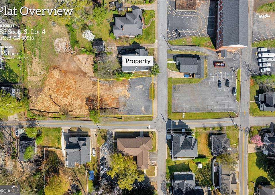 LOT 4/SLAB BUILDING LOT. A RARE FIND! One of the best spots in DOWNTOWN BUFORD! Walking distance to Main Street, the Community Center, School Campus, the Buford Nature Preserve & more. You are steps away from some of the finest restaurants and shops City of Buford has to offer. Indulge in dining experiences like Bare Bones Steakhouse, Aqua Terra Bistro & Ricos Kitchen. SWEEPING CITYSCAPE VIEWS in all directions. AWARD WINNING BUFORD CITY SCHOOL SYSTEM! Minutes to Lake Lanier, I-85 and I-985. Come see this one for yourself because there is a scarcity at all times of anything like it in downtown Buford.