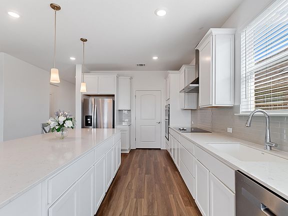 This is the one you've been waiting for! From the moment you walk in, this home has that easy, comfortable feeling that’s hard to find. With 3 bedrooms, an office space that could easily become a 4th bedroom, 2 bathrooms, and 2,000 square feet, there's plenty of room to breathe..and room to grow! The floor plan is smart and spacious, with the primary suite tucked away from the other bedrooms. The living, kitchen, and dining areas all flow together in a way that makes hosting feel natural and comfortable! The kitchen is incredible and the heart of the home. It features a spacious island for gathering, an abundance of cabinets, built-in appliances and a huge walk-in pantry ready for all your storage needs! With a dedicated dining area, there is space for a real dining table that won’t cramp your space or style. The primary bedroom is generously sized with a spa-like bathroom featuring double sinks, a spacious walk-in shower, the kind of closet that dreams are made of! Complete with a flexible bonus room that can serve as an office, playroom, guest space, or converted into a 4th bedroom if you need it. Out back, the yard is low maintenance and the covered patio is the perfect spot to start your mornings or wind down in the evening. Gregg Ranch is made for fun, comfort & community. From the resort style pool to the pickle-ball court, volleyball court, sports field, parks & more, this neighborhood makes it easy to love where you live!