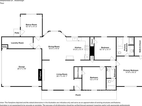 Home Features and Amenities: Air Conditioning, Bay Windows, Bonus Room, Covered Porch, Fireplace, Garage, Long Lease Terms, Luxury Vinyl Plank, Pet Friendly, Primary Bedroom on Main, Single Story House, Smart Home, Stainless Steel Appliances, Tile, Walk in Closet, W/D Hookups, and professionally managed by Invitation Homes.