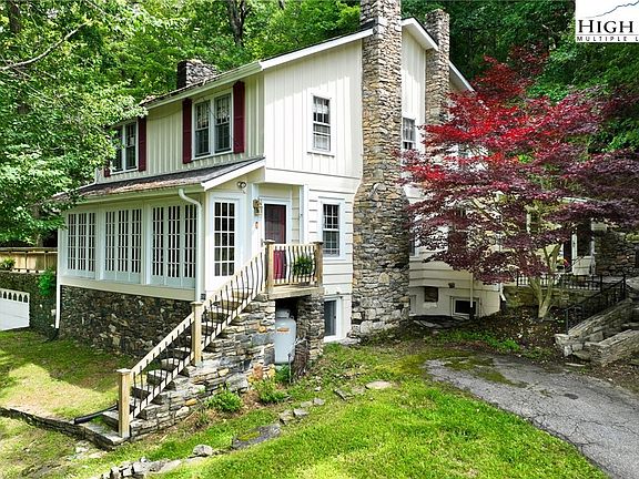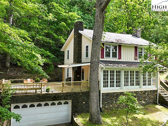 Welcome to Tree Top Lodge. This remarkable home is a sight to behold; in the heart of Boone, its history and character will captivate the soul. Beautiful hand laid stonework surrounds the expansive outdoor patio and is brought within the dining room. Upon entering you will feel like you have stepped back in time. Original hardwoods and hand crafted doors enhance the feeling of being in a traditional Appalachian home. This 6 bedroom property offers plenty of living space inside and out. Outdoor entertaining is a breeze with two built in grills with stone chimneys off the dining room and the 743sqft patio. This wooded lot allows for privacy, while conveniently close to all the amenities downtown Boone offers. A large sunroom off the living room is a wonderful space to read a book, take in the magnificent autumn foliage or just sip morning coffee and relax. The recently renovated lower level offers a large bedroom en suite with an indoor entrance from the main living area and a private entrance off the oversized garage. It is nearly impossible to find a property like this one, schedule a showing today!