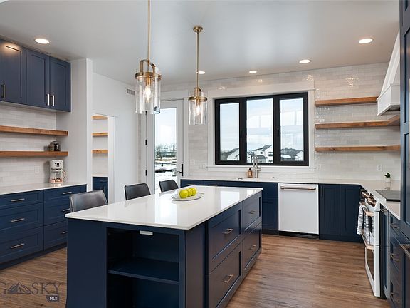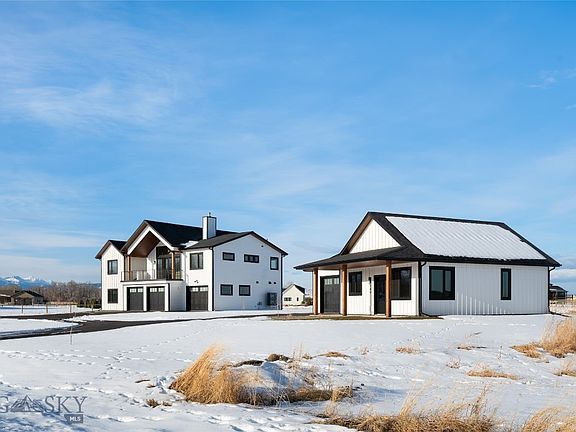 Gorgeous custom build home AND 791 sq ft single level guest home on just over 2 acres in the desirable Monforton School District! No stone was left unturned in the build and design of this house, with energy efficiency in mind and maximizing the natural light and mountain views from every direction. Walk into the main level through the oversized French doors to the entryway with vaulted ceilings. The main level consists of two bedrooms, laundry room, generously sized mud room with built in shelves and darling farmhouse style shiplap with ample coat hanging space. On the other side of the mud room is a main level suite with a full bathroom and gorgeous custom tile. The oversized heated three car garage has ample space for your toys, fitness equipment or storage. The second level features a gorgeous open floor plan with custom navy cabinetry and a matching cabinet style built in fridge. Gorgeous counter to ceiling tile with wood floating shelves, a walk in butlers pantry and coffee bar - this kitchen was beautifully designed with style and efficiency. The great room has grandiose vaulted ceilings, a real wood burning stove, and walk out covered deck with impressive Bridger views. The master suite is located off of the living room through a round arched doorway leading into the beautifully tiled master bath with a stand alone bathtub and walk in shower. The guest home located on the property is one level with an oversized garage. Open living concept with a full kitchen, laundry room, bathroom with custom tile and bedroom. This property is truly incredible and great value with land and privacy while still being conveniently located. Built with off-grid living and energy efficiency in mind - there is so much more to this property than meets the eye.