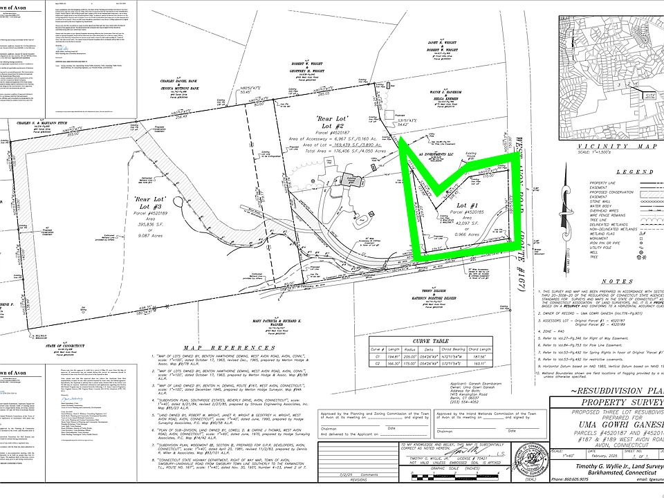Buildable Front Lot, Road facing with Approved Plans - 0.966 Acres in Avon, CT An exceptional opportunity to build your dream home in one of Avon's most desirable locations! This approved and subdivided lot sits at the front of the original 187-189 W Avon Road property and offers 0.966 acres (42,097 sq ft) of level, buildable land. Buildable Approved Lot, Ready for Your Dream Home. Don't miss this rare opportunity to build your custom home on an approved and build-ready lot adjacent to 187-189 W Avon Road. Approved by the Town of Avon as part of a 3-lot subdivision, this parcel comes with engineered and town-approved plans for a private well and septic system. Set in a quiet, tree-lined area and close to schools, trails, and Route 44, this is the perfect location for a new construction project. Highlights: Subdivided and approved building lot Private well and septic plans approved Peaceful setting near Avon Village Center Surrounded by upscale homes and natural beauty. Seller is motivated. Bring ALL offers! Subdivided from 187 - 189 W Avon Rd. Purchase individually or as a full 3-lot as package deal. Existing home 187 West Avon Road, Avon, CT 06001 | MLS #24123256 and Rear Lot: 189 West Avon Road, Avon, CT 06001 | MLS #24116127 also for sale. Ideal for custom home or builder investment. Inquire about full package pricing. Seller is motivated. Bring ALL offers!