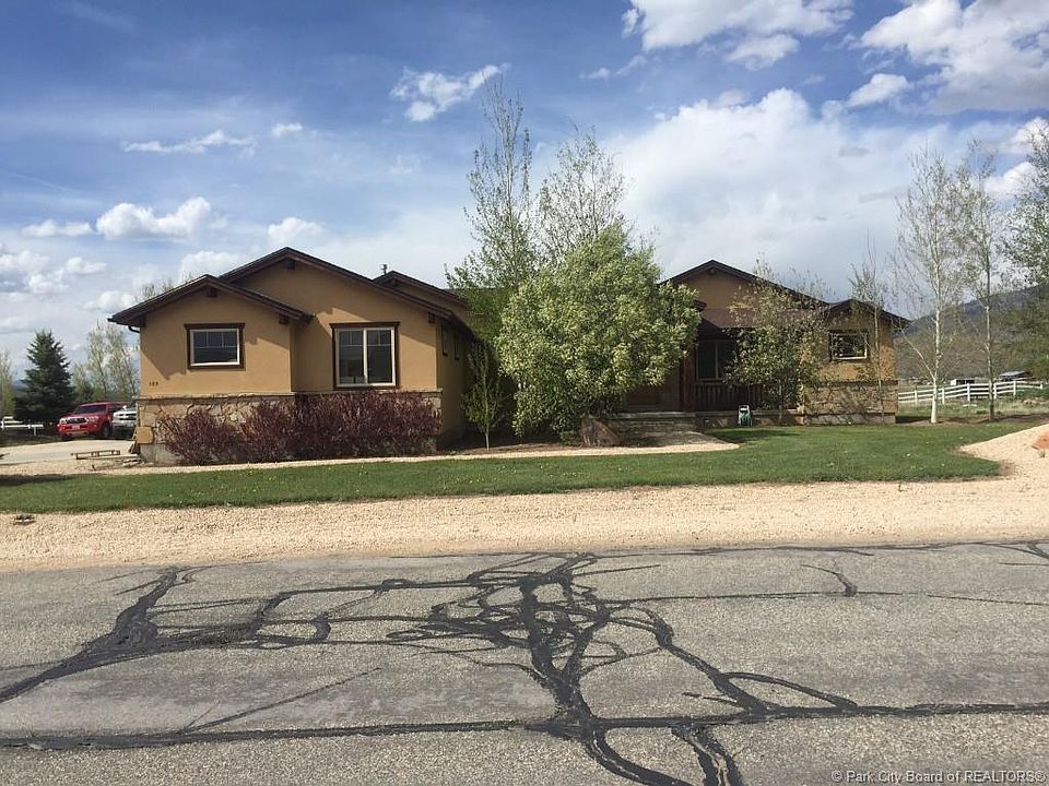 Custom built single level home with Custom built 1400 square foot shop/barn. All high end finishes. Exposed wood beams in family room, master bedroom, and spare bedroom. Vaulted ceilings in family room and master. Central AC and radiant heat though out. Central Vac. Custom built decks as well. The trees and a part of the back yard have underground sprinkler system. Over-sized two car garage attached. The shop has four garage doors. Three in the front and one on the rear. The center bay door is 14 feet tall. The house is currently leased month to month. Tenant needs 45 days notice to terminate lease. Please call for questions.