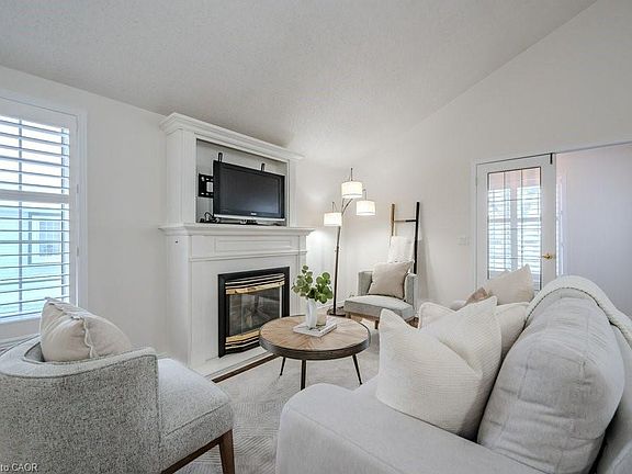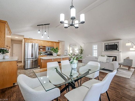 Charming DETACHED BUNGALOW with SOARING ceiling and TANDEM GARAGE in QUIET ADULT LIFESTYLE community of Martin Grove Village. Open concept layout with double vaulted ceiling and lots of natural light. Central kitchen with island and great counter space. You'll love the separate workspace/beverage area with additional cupboards and countertop. Spacious living room with gas fireplace and lovely windows with California shutters. Large primary bedroom with amazing walk-in closet. Second bedroom with double closet is spacious as well--this room could also be a great office or craft room. Large main floor bathroom has 2 sinks, large vanity, separate shower and amazing premier walk-in tub for your convenience! Main floor laundry with lots of storage and laundry sink. And there's more! Basement has a 3 pc bathroom, plus a finished bonus room which could be nice hobby room, workout area, etc. The rest of the basement provides a huge amount of storage space or so many possibilities for your personal touch. You'll love relaxing or visiting with family and friends on your private back deck--it spans almost the width of the house, has a gas line for barbeque, and lovely open space behind--no back neighbours! Motorcycle or extra stuff? You'll love the extra long garage--can fit 2 small cars tandem, or one large vehicle and lots of extra storage space/workshop, etc. Fantastic location--quiet area, minutes from the St. Jacob's Market, Highway 85, Conestoga Mall and all that Waterloo has to offer! Low overall cost of living and live in style! Come see this hidden gem!