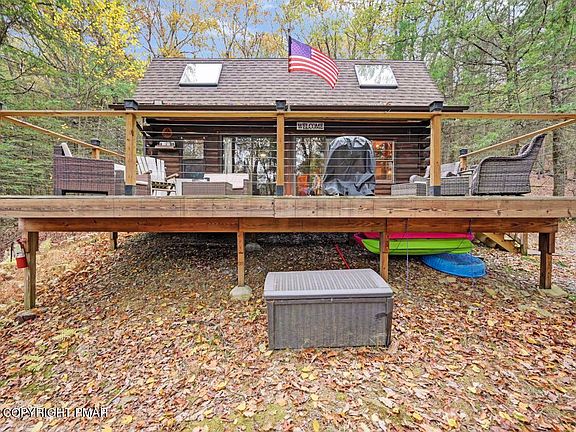 Tucked into a Wooded Hillside on 4.26 Private Acres, this Prescott Solar Series 3BR/2BA Solid Log home blends Timeless Craftsmanship with a Serene, Natural Setting. Warm, Character Rich interiors feature Custom Solid-Wood Doors, Walls, and Floors Crafted from Wood Dating to the WWII era, a Ceiling with Exposed Beams, and Large Skylights that provides Abundant Light. The Kitchen Offers Ample Cabinetry and Counter Space plus a Breakfast bar for Effortless Everyday Living. A Wood Stove Anchors the Living Room, while a Spacious Deck invites Outdoor Dining and Quiet Mornings among the trees. Peaceful and Private yet Convenient, you're a Short Drive to Beltzville Lake, Blue Mountain Ski Area, and many local attractions. This is an Ideal Retreat for a Year-Round Residence or a Nature Focused Getaway. Call for your Private Showing.