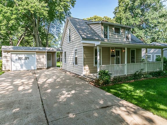Welcome this charming Cape Cod home situated on a double lot, just a short stroll to beautiful Lake Erie. Perfect home for starter home, downsizing, or rental. Inviting covered front porch welcomes you as you enter the home. Great for relaxing and enjoying the lake breeze. Spacious 1 1/2 car detached garage 20X20 with storage room can be easily attached to the home adding more living space, mud room/laundry. New garage door 2021. Aluminum siding, newer roof, fireplace, hardwood floors throughout (under carpet) newer ceramic tile in the eat-in kitchen and bathroom. Double wide concrete driveway, partially fenced in yard. Schedule your showing today!