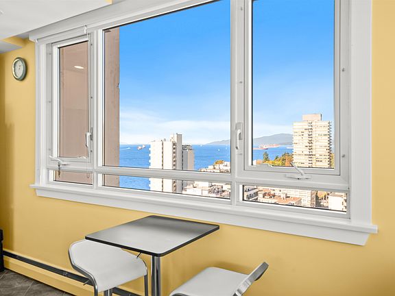 West of Denman! Bright 20th-floor corner suite with unobstructed ocean, mountain & city views from every window. NW exposure fills the home with natural light, ocean breezes & year-round sunsets. Extensive updates include a sleek high-gloss kitchen with quartz counters, new induction oven & S/S appliances. Be part of the unparalleled West End community, with beach, Stanley Park, pools, local shops & global eats on Denman Street at your doorstep. Well-managed concrete building with major upgrades complete, including roof, plumbing, pool & lobby, plus a rooftop lounge with 360° views. No Empty Homes Tax. Maint. fee includes taxes, heat, hot water & amenities. Lease prepaid to Dec 31, 2073.