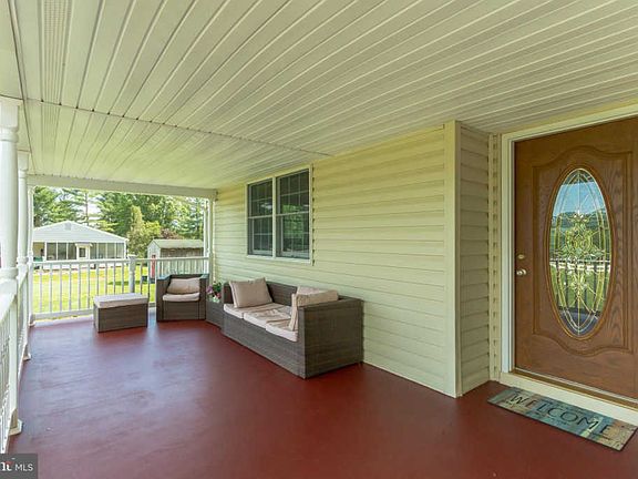 Enjoy the view from this southern style, front porch that welcomes you to this beautifully crafted three bedroom, two bath ranch home. Located on just over an acre of land, the property features a large driveway, two-car garage, and additional expansive outbuilding that is perfect for vehicle storage or shop use. Clean lines and sunlight spilling through the prominent windows, highlight the hardwood floors, crisp crown molding, and charming interior. The eat-in kitchen is spacious and includes plenty of counter space, cabinet space and new blinds! The master bathroom features granite countertops, and the secondary bathroom stuns with beadboards and a pedestal sink. A large basement with backyard exit features built-in shelving, a large living area, bedroom, utility room, and exercise or multi-purpose room. Recent property updates include a new stove/range, basement carpeting, and upgraded ridge vent. A Whole House Generator conveys with the property