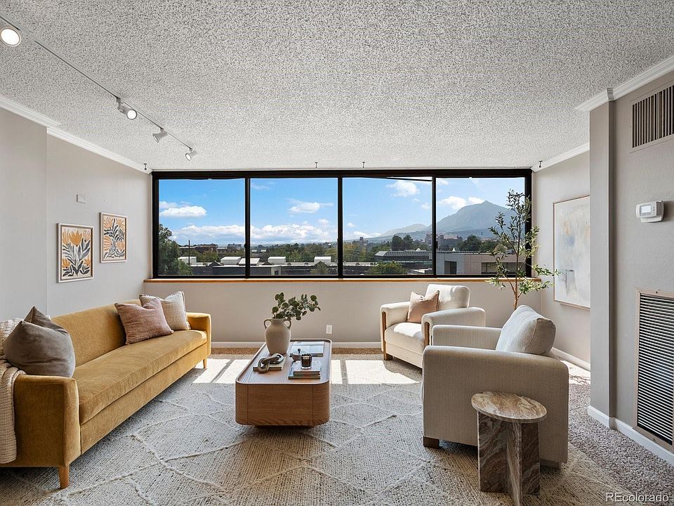Experience iconic Boulder living with breathtaking **Flatiron views from every room**! This light-filled 1 bed, 1 bath condo boasts **wall-to-wall windows** that frame the mountains and flood the space with natural light and positive spiritual energy. Relax in the spacious living room or wake up in the bedroom to unobstructed mountain views right outside your window.