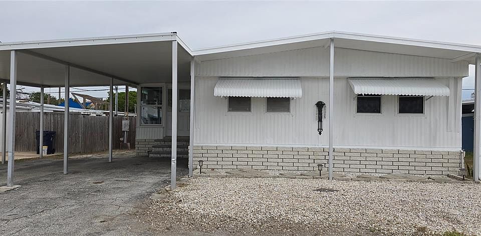 Welcome to this stunning remodeled double-wide manufactured home in the desirable, no age-restricted community of Buena Vista, where you own your own land! From the moment you arrive, you’ll notice the great curb appeal and spacious double-wide carport with plenty of extra parking. Step inside through the gorgeous front door and fall in love with the enclosed 20' x 10' sunroom, featuring all-new windows and luxury vinyl flooring. This versatile space can serve as a family room, office, playroom, or media room—the possibilities are endless! The fully fenced private backyard provides a perfect setting for relaxing or entertaining. Inside, you’ll find a large open-concept living and dining area—ideal for gatherings. The updated kitchen is a chef’s dream, complete with ample counter space and cabinetry. The indoor laundry room offers plenty of additional storage for convenience. You’ll be impressed by the beautiful guest bath, featuring a walk-in shower and double vanity. All three bedrooms are generously sized with built-in closets, and the primary suite includes a full bath with both a tub and shower. Additional highlights include: AC replaced 6 years ago and still under warranty Located in Flood Zone X (no flood insurance required!) Low HOA fees of $109.50 a quarter that includes street lights and trash pick up 2x a week Many thoughtful updates and extras throughout a clean 4point was performed in November of 2025. This home truly shows the care and love that’s gone into every detail. You will love all that the community of Buena Vista has to offer including bingo, cards, shuffleboard, basketball, pool tables or meet up with neighbors at the Saturday morning breakfast! Buena Vista is located close to shopping, and nightlife! A short drive to local beaches and theme parks! Don’t miss the opportunity to make it yours!