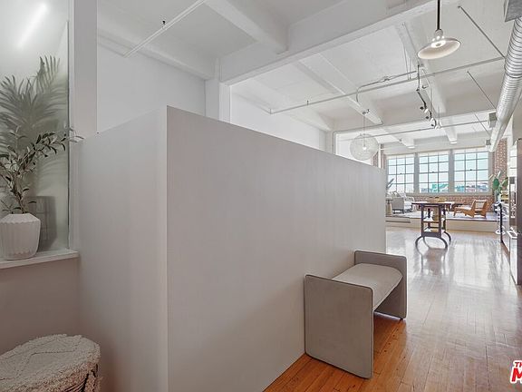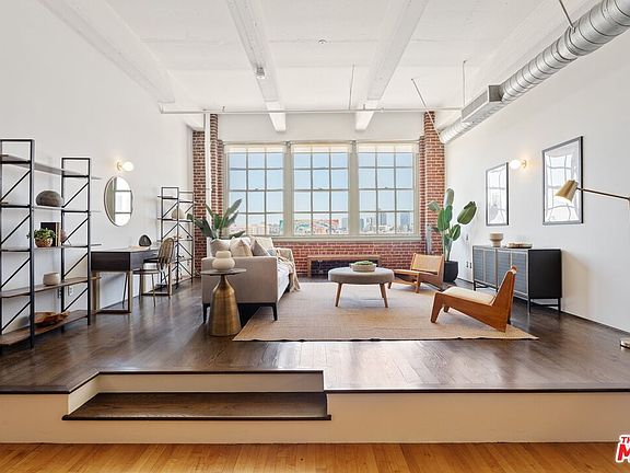 Welcome home... Step into a stunning loft that truly stands apart. With its distinctive design and character (16' high soaring ceilings, original factory windows, exposed brick and AC duct work, and original maple floors) this bright and serene space is a haven for creativity and comfort. The unit features custom-built white oak closets along the private entry with ample storage, adding both style and functionality, an added step-up platform that elevates the living space perfect for showcasing artwork or creating a special gathering area, breathtaking sunset views of the DTLA city skyline, a pony wall for bedroom privacy, a galley kitchen equipped with industrial finishes and custom island table, Carrera marble bathroom, a dedicated parking space with added EV charger, and a rare on-site storage unit ideal for stowing away extra belongings. The Biscuit Company Lofts is a landmark building constructed in 1925 and restored in 2006 zoned live-work and Mills Act-approved for added property tax savings. This iconic building offers a distinctive living experience with a host of on-site and surrounding amenities designed to elevate your urban living and dining experience. The amenities include a private green space retreat with a pool, picnic and BBQ area, a dog run, gym, and 24/7 front desk and security. Nestled in a prime location, Biscuit Lofts is just steps away from Hanks Organic Market, top-rated Los Angeles bars and restaurants that include Camelia, Yess, Bestia, Damian, Bike Shed Motor Co., Everson Royce Bar, Brera Ristorante, Pizzanista, Bread Lounge, Afuri Ramen, Zinqe Cafe, Blue Bottle Coffee, and the list goes on. It's unbelievable. Everything you need is within reach, making city living a breeze.