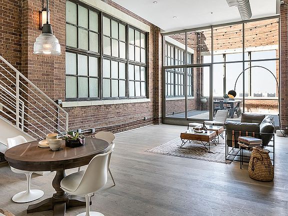 Exceptional opportunity to live in the penthouse suite of the renowned Biscuit Lofts with the added bonus of a huge private outdoor patio. Beautiful brick walls accompanied with hardwood floors throughout the entire space makes you feel like you're in a different era. Take in the city views from the private patio, set up shop in his/her mezzanine offices or spend time in the bonus room that offers opportunity to be a private guest room, private fitness room or meditation room. Close proximity to all that the Arts District offers starting with Church & State directly downstairs from the loft, plus many more unique coffee shops, great restaurants and beer gardens. Includes two covered parking spots, community pool, exercise room and concierge. The option to lease is available at $8,500/month.