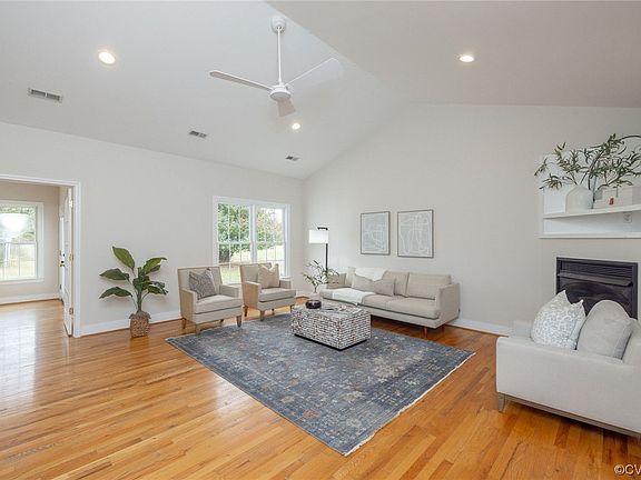 - Description: Hardwood floor, vaulted ceiling, fan, gas fp