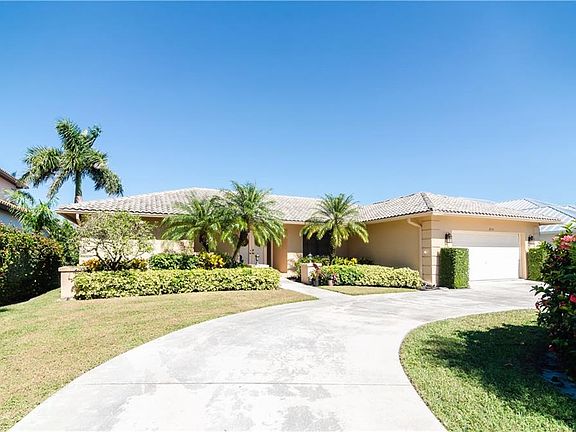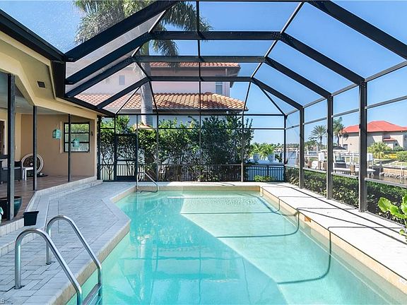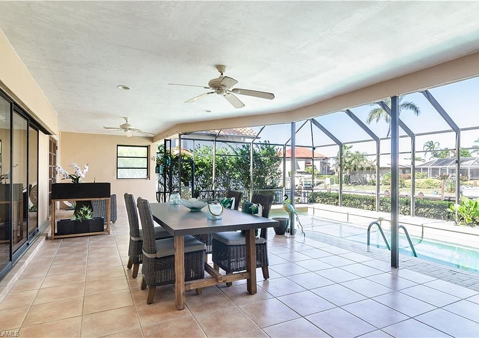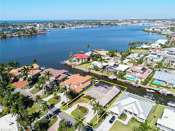 Need lots of space? Are you a creative decorator? Great bones in this elevated 80's home with open spacious floor plan. This 3-bedroom home has a large family room with fireplace, a great room, formal living room and dining room that could be a den, cathedral ceiling with skylight. Relax outdoors in your large lanai, the bonus screened-in seating area, or your pool. Enjoy bay views from pool/deck/family room area. Great home for your boat--just seconds away from Naples Bay, deep water, and no bridges to Gulf. Walk or bike to Fifth Avenue and beaches. Best value in the neighborhood--priced to sell this season--bring offers.