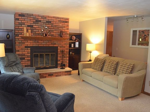 A rare find! 3 bedroom, 2.5 bath one story design home has an excellent central Plover location within walking distance of the Green Circle Trail! Beautifully designed home with brick accents and a covered front porch offers a wood burning fireplace in the living room. Dinette with deck access is open to the kitchen featuring a breakfast bar, tile backsplash, updated sink/faucet/counter-tops, with appliances included. Master bedroom with private bath.Lower level offers an expansive family room complete with dry bar and pellet stove! Half-bath in lower level. Underground sprinklers on separate well. Fenced backyard with fire pit and 16x16 outbuilding/garden shed. Included: Family Room Speakers, Dry Bar. Negotiable: Washer and Dryer. Seller represents the following recent improvements: 2017 driveway seal coat, 2016 master bath remodel and kitchen updates, 2014 water heater, 2010 front door and patio door, 2009 triple pane vinyl windows, 2007 garden shed, 2005 backyard fence. 200 amp electric service. An excellent value!