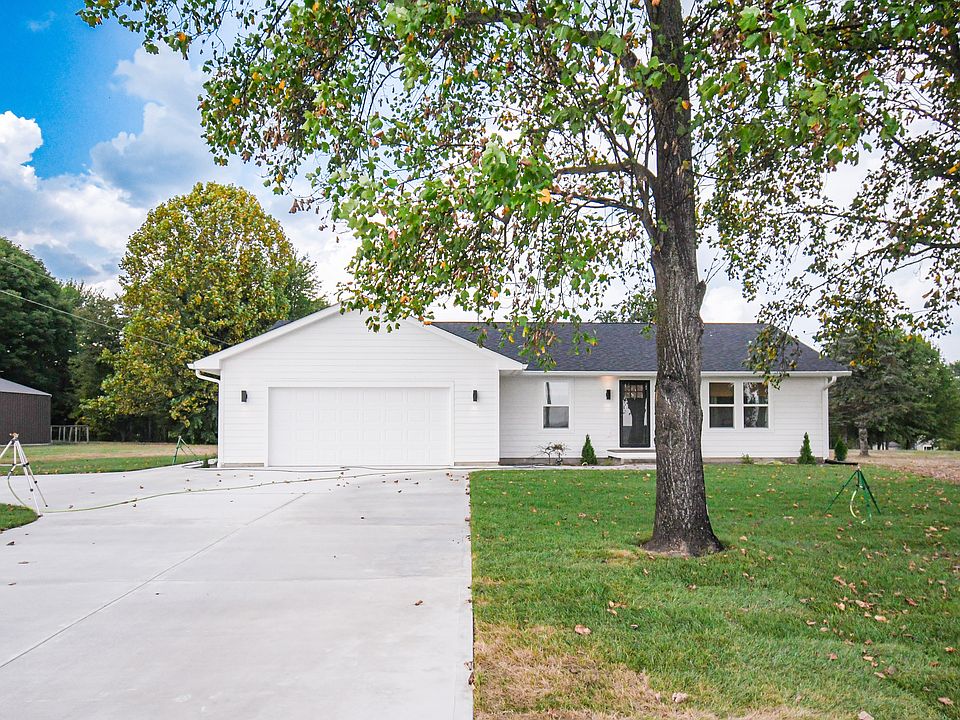 This stunning home has been completely redone from the foundation/framing up in 2024, essentially a new construction on a spacious 1.39-acre lot with no HOA!! Enjoy a peaceful, country setting while staying just minutes from shopping, dining, and easy interstate access. Major updates include: All new ZIP sheathing, LP Smart Siding, soffits, gutters, 30-year dimensional roof, windows, interior & exterior doors, drywall, paint, trim, insulation, plumbing, electrical (wiring, switches, outlets), HVAC system with new ductwork & thermostat, and lighting throughout. Interior highlights: New quartz countertops, tile backsplash, stainless steel appliances, washer/dryer, new vanities, shower/tub inserts, toilets, bathroom vents, luxury flooring, and more. Exterior features: New concrete driveway and sidewalks, landscaping with low maintenance rock flowerbeds, front and back TREX decks, new sod in front and west yard, and cleared backyard. Encapsulated crawlspace with vapor barrier. Connected to city water and city sewer! Turnkey and move-in ready!! Modern finishes, energy-efficient systems, and plenty of space inside and out. A rare find! Don't miss this opportunity to own a like-new home in an unbeatable location-country setting, city convenience, and 1.39 acres of possibilities. Broker Owned.