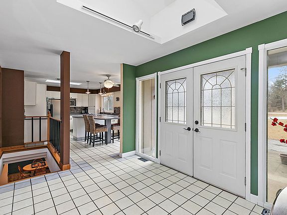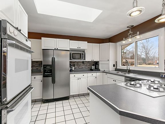 Tucked away in a peaceful cul-de-sac in Sleepy Hollow, this impressive home welcomes you with a circular driveway leading to a charming covered front porch. Double doors open into a ceramic-tiled foyer, setting the stage for a home filled with character and thoughtful design. To your right, the bright eat-in kitchen boasts bay windows, a double wall oven, all Stainless steel appliances, and a cooktop, creating a space perfect for culinary creativity. Just off the kitchen, the mudroom offers a mirrored closet and a convenient counter and cabinet area. The formal dining room features wood laminate flooring with elegant tile details and seamlessly flows into the living area, where a stunning white brick fireplace with a hearth becomes a cozy focal point. Sliding glass doors from the dining area lead to a balcony, allowing for an effortless indoor-outdoor lifestyle. The living room, once a third bedroom, now offers an airy, open space filled with natural light from a bay window and skylight. The main level full bathroom is a standout with its modern beam details, double sinks, ample cabinetry, and a glass-bricked window for a contemporary touch. There are two master suites in the home, one on the main level and one in the walkout basement. The main level master suite impresses with generous closet space, an en-suite bath with skylights, porcelain tile, long counter space with double sinks, and abundant natural light. A second bedroom is on the main level, features a mirrored sliding closet and ceiling fan. A well-appointed laundry room, complete with a hanging rack, cabinets, washer, and dryer, adds to the convenience. The walkout basement expands the living space with another master bedroom featuring its own en-suite bath with a standing shower, wood laminate flooring, and glass brick accents. The spacious family room is ideal for entertaining, complete with recessed lighting, a bar area, and sliding doors leading to a screened porch. Down the hall, the utility room doubles as a storage or exercise area. Next to the wood shop area is a bookcase that opens up to a huge bonus room with built-in cabinetry and counter space, offering endless possibilities for whatever your needs may be. Located near dining, shopping, schools, and parks, this unique home blends comfort, character, and functionality in a desirable location. Don't miss this one-of-a-kind opportunity!