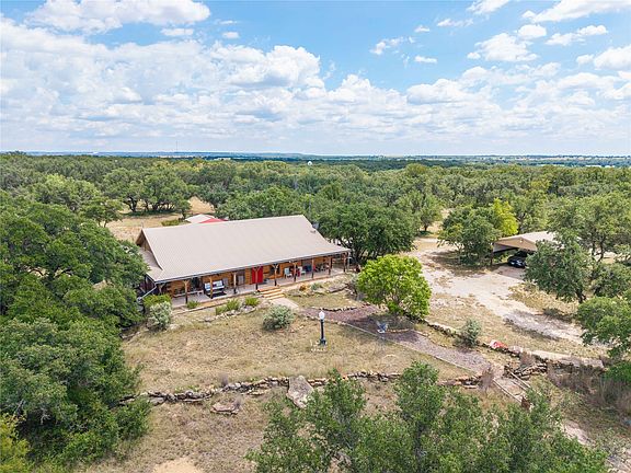 Log cabin charm nestled in heavy oak cover in the heart of central Texas. This 1600 sq ft 2 bath 2 bedroom cabin is dressed with large inviting porches that offer the perfect place to relax and enjoy the peace that the country has to offer. This meticulously kept home has all the appeal of a traditional log cabin with a nice mix of wood finish in the interior, granite countertops, spacious bedrooms and large master bath. The home overlooks a beautiful stock tank and offers close access to a large 30 x 60 shop with 3 bays that have roll up doors.