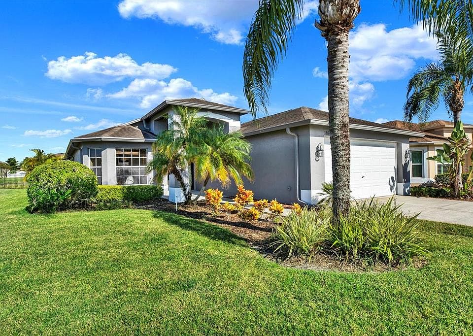Fabulous Home in Trinity’s Coveted Heritage Springs Village! Don’t miss this rare opportunity to own a beautifully maintained home on a premium corner lot in the sought-after, gated Heritage Springs Village—a pet-friendly, age-restricted community known for its pristine landscaping and resort-style amenities. Enjoy serene pond views from your oversized, screened patio, perfect for relaxing or entertaining. This spacious split-bedroom floor plan features soaring ceilings, a well-appointed kitchen with abundant cabinetry, stainless steel appliances, and a cozy dinette area. The open-concept living and dining space offers seamless indoor-outdoor living with sliding glass doors that frame the tranquil water view. The primary suite includes two walk-in closets and a private en-suite bath with a dual sink vanity and walk-in shower. The second bedroom is conveniently located near a full guest bath with a tub/shower combo. A versatile bonus room provides flexibility for a home office, den, or guest space. Additional highlights include an interior laundry room, oversized two-car garage, and lush, mature landscaping. Heritage Springs offers a clubhouse, fitness center, golf course, tennis courts, resort-style pool and spa, and an active social calendar. Located in a non-flood zone, close to Gulf beaches, shopping, restaurants, and Tampa International Airport. Schedule your private showing today!