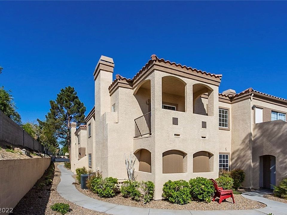 Welcome to this charming upstairs condo located in the desirable Serenade HOA in Henderson! This well-maintained 2-bedroom, 2-bath home features a convenient 2-car garage below, offering both privacy and functionality.