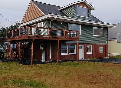 This beautiful home features 4 bedrooms, 1 and 3/4 baths, a 1,200 sf shop, a 345 sf deck and an additional 264 sf of indoor finished storage! Home has STUNNING ocean, mountain and lake views! House is Southern exposure and features a front yard and a back yard. Sit and watch the whales, sea otters, sea lions, salmon jump, eagles, boats pass, stunning sunrises and so much more! Step outside and fish, launch a kayak or just have some fun on the beach. Home has been COMPLETELY remodeled and features a third floor master suite of your dreams with shiplap ceilings, walk-in closet, tiled shower and panoramic ocean and lake views! Third floor remodel has just been finished, so never even lived in! The First floor of the house is a 1,200 sf shop, built from cinder block and has a full cement pad. It is plumbing ready and can easily be remodeled for a mother in law apartment or extra living space! New garage door on site as well. Zoned as Business, so many potentials for this home! Quiet neighborhood with friendly neighbors. Close to schools and shopping.